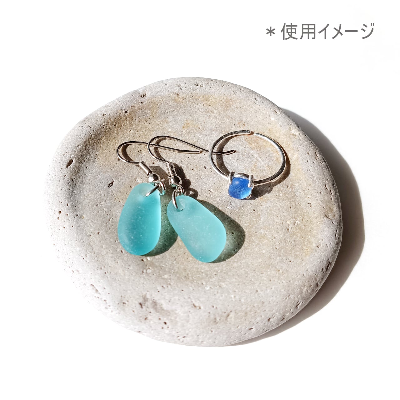 その独特な雰囲気と質感を持つ陶器の欠片は皿の様な形状となり、収集したシーグラスのディスプレイやピアス・リングなどを載せるアクセサリートレイなどとしてご利用いただけます。