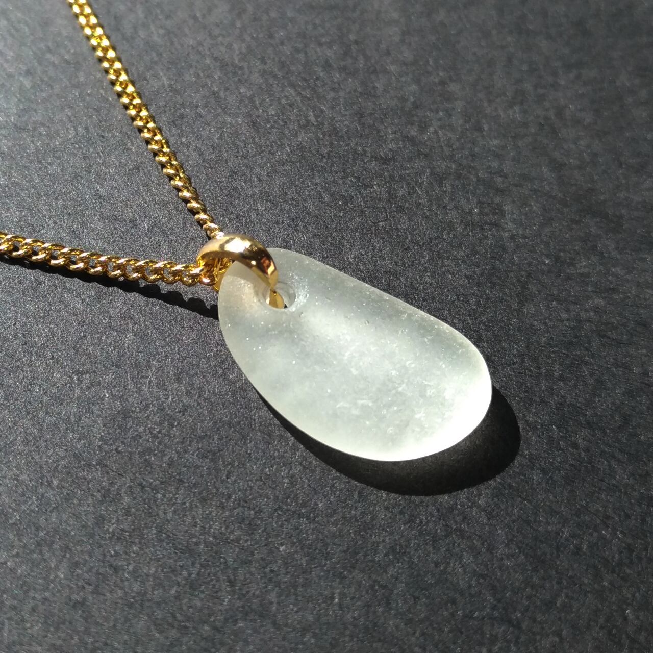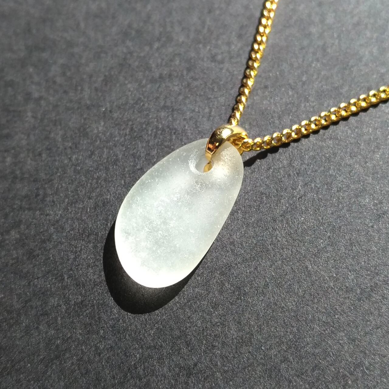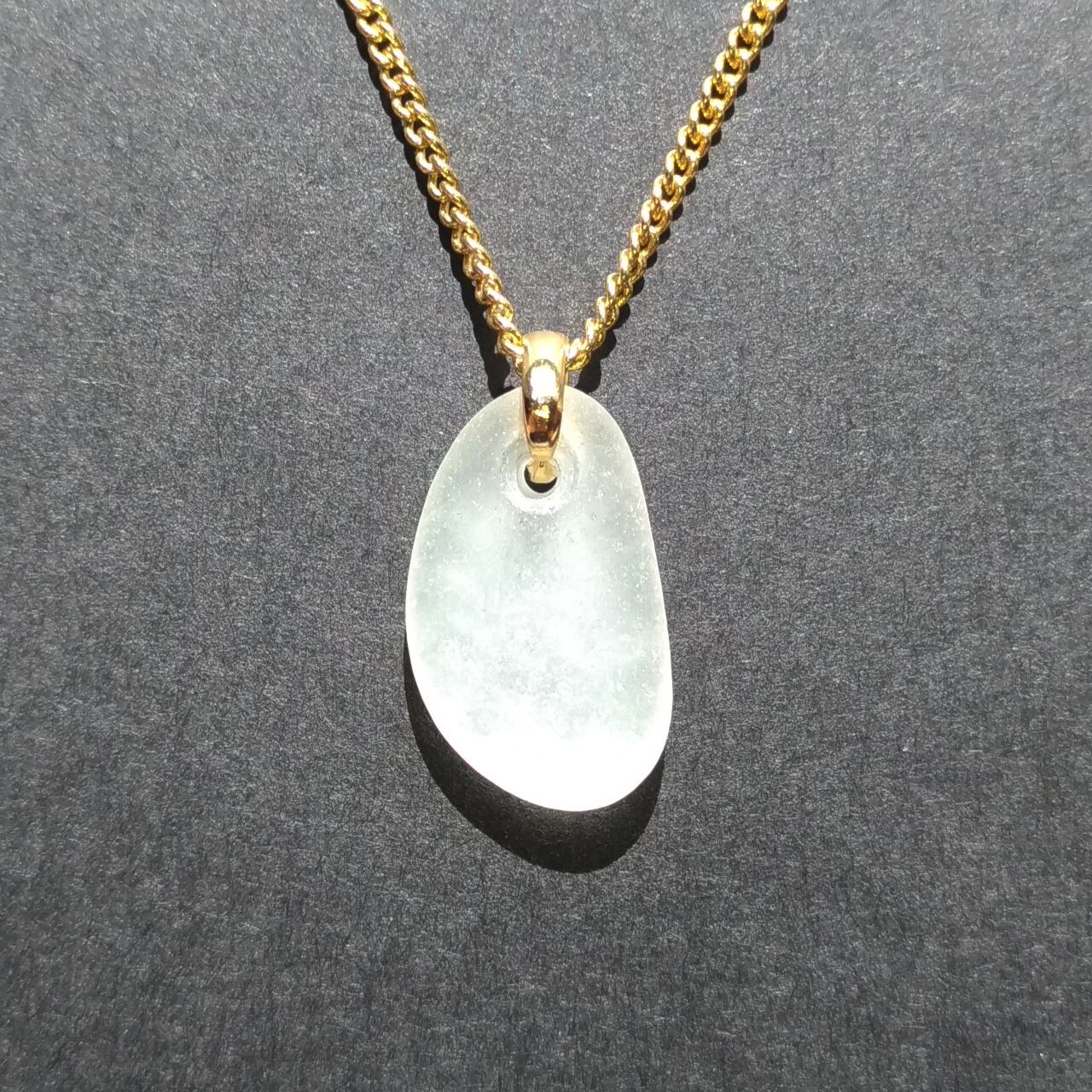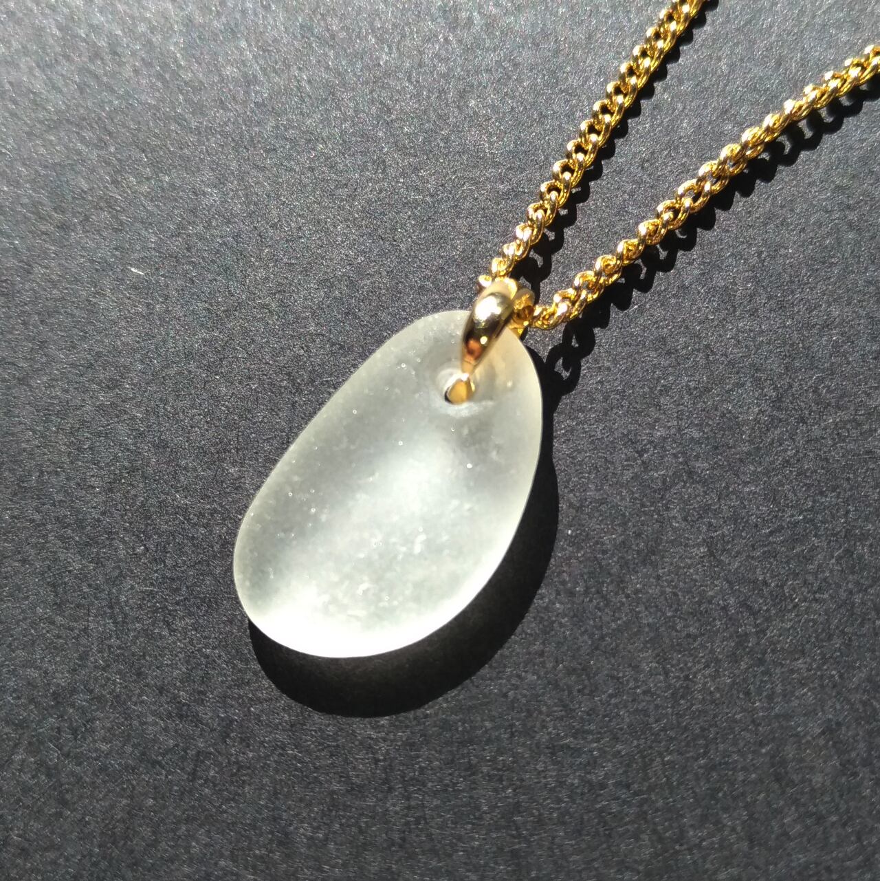 天然の白色シーグラス(ビーチグラス)を使ったシンプルなネックレスです。